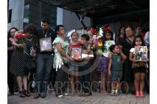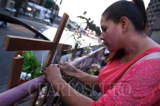 MONTERREY, NUEVO LEÓN, 25AGOSTO2015.- Familiares y amigos de las víctimas del Casino Royale se reunieron a las afueras del inmueble para conmemorar cuatro años del ataque que dejó 52 muertes. En la ceremonia se recordó a cada uno de los fallecidos y dejaron flores en las cruces que se encuentran en la entrada del casino. FOTO: GABRIELA PÉREZ MONTIEL / CUARTOSCURO.COM