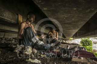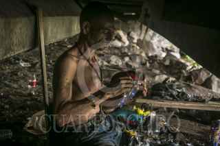 CULIACÁN, SINALOA, 26AGOSTO2015.- José originario del puerto de Veracruz y Oscar de Chiapas, se refugian abajo del puente Humaya el cual, lo han adoptado como su hogar por varios días en lo que dura su estancia en la ciudad; para ganar unos cuantos pesos, realizan trabajos de reciclado con latas que se encuentran en la calle que al final adoptaran la forma de una rosa, ellos no venden, solamente piden cooperación con alguna moneda, alimento o ropa que ayudara a seguir su camino al norte del país en busca de trabajo en los campos de durazno para posteriormente intentar el sueño Americano. Debido a la falta de empleo muchas personas de distintas regiones del país deciden aventurarse en busca de mejores opciones de trabajo, como menciona Jose y Oscar ¨no es que nos guste andar así, aveces piensan que somos delincuentes o que robamos pero la situación nos obliga a salir¨. FOTO: RASHIDE FRIAS / CUARTOSCURO.COM