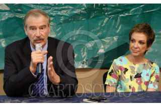MONTERREY, NUEVO LEÓN, 27AGOSTO2015.- El expresidente de México Vicente Fox y su esposa Martha Sahagún, acudieron al Hotel Crown Plaza en donde ofrecieron una rueda de prensa para promover el foro de negocios Citek2015 el cual está dirigido a empresas, entidades de gobierno, así como el área de las tecnologías de la información. FOTO: GABRIELA PÉREZ MONTIEL / CUARTOSCURO.COM