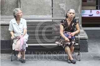 CUERNAVACA, MORELOS, 27AGOSTO2015.- Dos mujeres adultas mayores descansan en una de las bancas de la calle Guerrero en la colonia centro. Desde 1982 los adultos mayores en todo el mundo son festejados en agosto, mes en el que se celebró la primera Asamblea Internacional de la Organización de la Naciones Unidas dedicada al envejecimiento. A partir de 1998 se instituyó en todo el país el 28 de agosto como Día del Anciano, título que fue cambiado posteriormente a Día Nacional del Adulto Mayor. FOTO: PATRICIA MORALES /CUARTOSCURO.COM