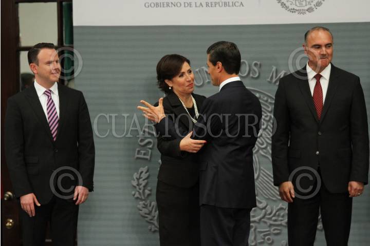 MÉXICO, D.F., 27AGOSTO2015.- Enrique Peña Nieto, Presidente de México, presentó en la residencia oficial de los Pinos nuevos cambios en el gabinete federal. Renato Sales, en la Comisión Nacional de Seguridad, Rafael Pacchiano, titular de la Secretaria de Medio Ambiente y Recursos Naturales, Rosario Robles Berlanga, en la Secretaria de Agrario Territoral y Urbano, José Calzada, Secretaria de Agricultura Ganadería, Desarrollo Rural, Pesca y Alimentación, José Antonio Meade, Secretario de Desarrollo Social, Claudia Ruiz Massieu, Secretaria de Relaciones Exteriores, Francisco Guzmán, jefe de la Oficina de la Presidencia, Aurelio Nuño, Secretario de Educación Pública, Enrique de la Madrid, Secretario de Turismo y José Reyes Baeza, nuevo titular del ISSSTE. FOTO: ADOLFO VLADIMIR /CUARTOSCURO.COM