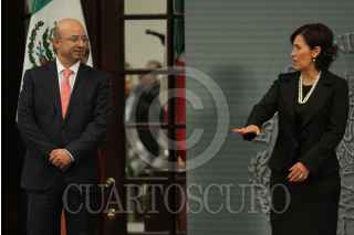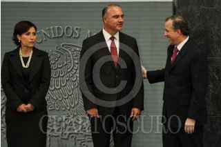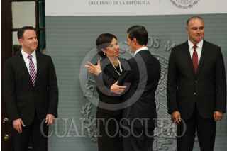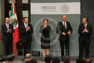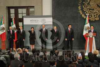MÉXICO, D.F., 27AGOSTO2015.- Enrique Peña Nieto, Presidente de México, presentó en la residencia oficial de los Pinos nuevos cambios en el gabinete federal. Renato Sales, en la Comisión Nacional de Seguridad, Rafael Pacchiano, titular de la Secretaria de Medio Ambiente y Recursos Naturales, Rosario Robles Berlanga, en la Secretaria de Agrario Territoral y Urbano, José Calzada, Secretaria de Agricultura Ganadería, Desarrollo Rural, Pesca y Alimentación, José Antonio Meade, Secretario de Desarrollo Social, Claudia Ruiz Massieu, Secretaria de Relaciones Exteriores, Francisco Guzmán, jefe de la Oficina de la Presidencia, Aurelio Nuño, Secretario de Educación Pública, Enrique de la Madrid, Secretario de Turismo y José Reyes Baeza, nuevo titular del ISSSTE. FOTO: ADOLFO VLADIMIR /CUARTOSCURO.COM
