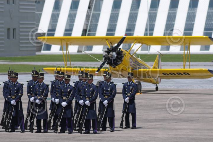 ZAPOPAN, JALISCO, 27AGOSTO2015.- Salvador Cienfuegos, titular de la Secretaría de la Defensa Nacional y Aristóteles Sandoval, gobernador del estado, presidieron la ceremonia de graduación del personal que culminó sus estudios en el Colegio del Aire. En total fueron 113 cadetes que recibieron sus certificados, alas, gafetes y pistolas, quienes se integrarán a las filas de la fuerza aérea mexicana. FOTO: DIEGO SIMÓN SÁNCHEZ /CUARTOSCURO.COM