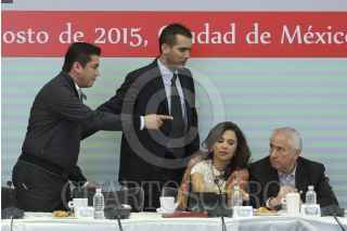 MÉXICO, D.F., 28AGOSTO2015.- Carlos Alberto Puente Salas, coordinador de los senadores del Partido Verde Ecologista de México y Jorge Emilio González, senadores por el PVEM, durante la VII Reunión Plenaria del PRI y PVEM. FOTO: ADOLFO VLADIMIR /CUARTOSCURO.COM