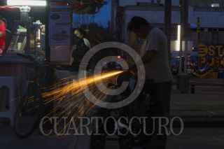 MÉXICO, D.F., 28AGOSTO2015.- Un afilador despacha en la calle de Morelos en la colonia Juárez. FOTO: MOISÉS PABLO /CUARTOSCURO.COM