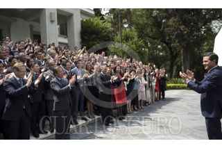 MÉXICO, D.F., 28AGOSTO2015.- El Presidente Enrique Peña Nieto se reunió en Los Pinos con los diputados electos del PRI y del PVEM, encabezados por César Camacho Quiroz y Jesús Sesma Suárez, respectivamente. En el convivio se comentaron diversos asuntos de interés nacional con vistas al próximo periodo legislativo que inicia el próximo 1 de septiembre. FOTO: PRESIDENCIA /CUARTOSCURO.COM