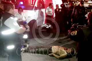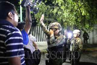 TLALNEPANTLA, ESTADO MÉXICO., 29AGOSTO2015.- Un presunto secuestrador, perdió la vida cuando iba a ser puesto a disposición ante el ministerio público en la agencia conocida como Manzana de Roma de este municipio, El exceso de golpes recibidos en cara y tórax, al parecer la causa aparente del deceso de este hombre. Por tal motivo, personal militar y estatal, intentaban con lámparas y lonas, impedir la labor informativa de los medios de comunicación que arribaron al lugar, con la intención de dar a conocer este hecho noticioso. FOTO: LUIS CARBAYO /CUARTOSCURO.COM