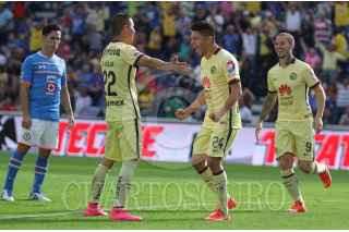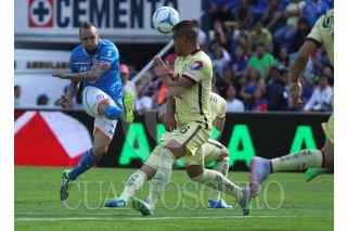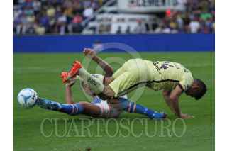 MÉXICO, D.F., 29AGOSTO2015.- En partido de la jornada 7 de la Liga MX Apertura 2015, Matias Buoso dispara al arco durante el encuentro que la máquina celeste del Cruz Azul pierde en casa dos goles por cero frente a las Águilas del América. FOTO: ADOLFO VLADIMIR /CUARTOSCURO.COM