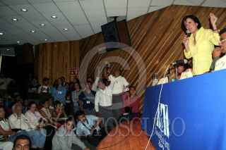 MÈXICO, D.F.25MAYO2006. La candidata a la presidencia por el partido Alternativa Social, Patricia Mercado intercambiò ideas con los estudiantes de la Universidad Autònoma Metropolitana campus Xochimilco. Expuso las propuestas para mejorar la situciòn laboral de recien egresados. Un estudiante se acerca a tomarle una foto. FOTO: Paola Hidalgo/CUARTOSCURO.COM
