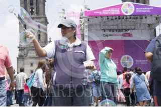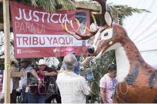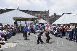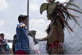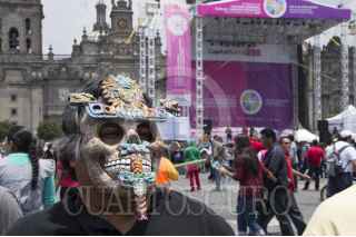 MÉXICO, D.F., 30AGOSTO2015.- Cientos de capitalinos se dieron cita en zócalo que fue sede de la "II Fiesta de las Culturas Indígenas, pueblos y barrios originarios de la Ciudad de México 2015", la cual tiene el objetivo el mostrar las diversidad cultural de los pueblos que existen en la capital del país. Algunos de los grupos que participaron fueron: huasteco, maya, kiché, otomí y totonaca. Al igual que la tribu Yaqui quienes exigen justicia ante la construcción del acueducto Independencia, en Sonora. Los asistentes podían adquirir productos artesanales al igual que gastronomía procedente de los diferentes grupos así como del país invitado, Bolivia. FOTO: GALO CAÑAS /CUARTOSCURO.COM