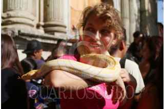 OAXACA, OAXACA, 31AGOSTO2015.- Este lunes se celebró el día de San Ramón Nonato, santo patrono de la vida, por lo que decenas de feligreses acudieron a la iglesia de La Merced ubicada en la ciudad de Oaxaca para bendecir a sus mascotas a las cuales suelen disfrazar, los animales van desde perros, gatos y pericos hasta víboras, cullos y puercoespines. FOTO: ARTURO PÉREZ ALFONSO /CUARTOSCURO.COM