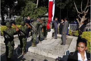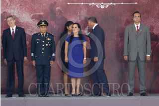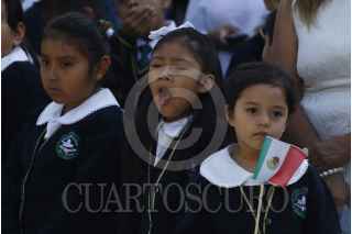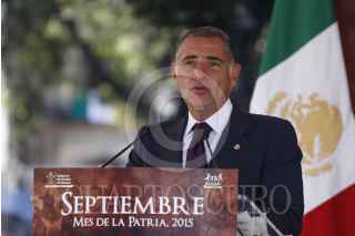 OAXACA, OAXACA, 01SEPTIEMBRE2015.- El gobernador del estado, Gabino Cué Monteagudo encabezó el izamiento de la bandera nacional en la alameda de León, con lo que dio inicio el programa "Septiembre mes de la patria". El mandatario fungió como orador oficial, en su mensaje se refirió a la renovación del Instituto Estatal de Educación Pública de Oaxaca (IEEPO), el cual dijo fue necesario para recobrar la rectoría de la educación en la entidad. FOTO: ARTURO PÉREZ ALFONSO /CUARTOSCURO.COM