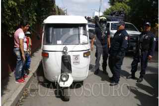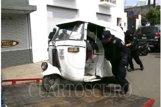 OAXACA, OAXACA, 02SEPTIEMBRE2015.- Elementos de la Policía Vial y Municipal montaron un operativo en la zona norte de la ciudad de Oaxaca para la detención de mototaxis que brindan el servicio de transporte de forma irregular. Los uniformados detuvieron más de 20 unidades ya que no contaban con los permisos necesarios o incluso ampliaron su ruta sin autorización de la Secretaría de Vialidad, los vehículos detenidos fueron subidos en grúas y trasladados al corralón, dichas unidades son de miembros del Sindicato Libertad, la Confederación Nacional de la Productividad (CNP) o de la Confederación de Trabajadores de México (CTM). FOTO: ARTURO PÉREZ ALFONSO /CUARTOSCURO.COM