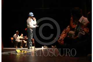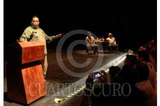 MONTERREY, NUEVO LEÓN, 02SEPTIEMBRE2015.- Bajo la dirección de Alberto Ontiveros se presentó en la sala experimental del Teatro de la Ciudad la puesta en escena "Misa Fronteriza", que aborda el tema de migración a Estados Unidos; esto como parte de la Muestra Regional de Teatro del Noreste a través del Consejo para la Cultura y las Artes en Nuevo León (CONARTE). FOTO: GABRIELA PÉREZ MONTIEL / CUARTOSCURO.COM
