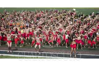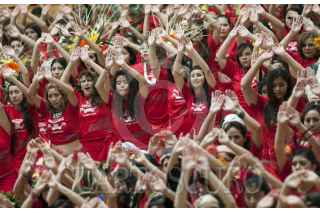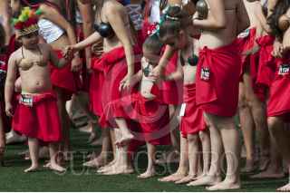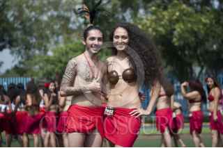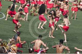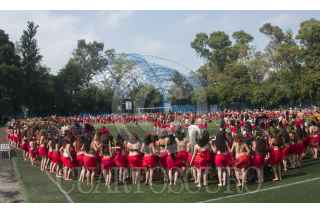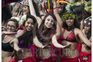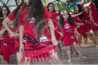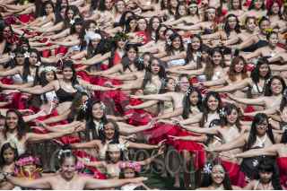 MÉXICO, D.F., 05SEPTIEMBRE2015.- Como una forma de promover la danza polinesia en México, un grupo de bailarines de distintas escuelas del país, se reunieron en el deportivo Plan Sexenal para intentar romper el récord Guinness de la mayor cantidad de personas bailando el Ori Tahití, una disciplina de dicha danza. El evento inició a las 9 de la mañana, cuando los bailarines, en su mayoría mujeres de todas las edades, ensayaron al interior del domo deportivo para luego salir a la cancha de fútbol donde durante 8 minutos agitaron todo el cuerpo al ritmo de las percusiones. Fueron más de mil participantes que esperarán la evaluación del jurado para aprobar el récord, ya que Estados Unidos mantiene el premio y puede que en estos días pretenda rebasar el número de bailarines que se congregaron hoy. FOTO: DIEGO SIMÓN SÁNCHEZ /CUARTOSCURO.COM