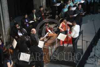 MÉXICO, D.F., 05SEPTIEMBRE2015.- Integrantes del Ensamble Escénico Vocal del Sistema Nacional del Fomento Musical presentaron un concierto en el Antiguo Palacio del Arzobispado, para presentar "La pasión según San Juan", obra compuesta por Johann Sebastian Bach quien fuera fuente de inspiración e influencia para posteriores compositores y músicos. FOTO: DANIEL HUERTA /CUARTOSCURO.COM