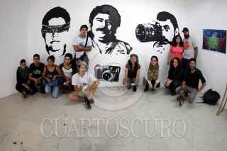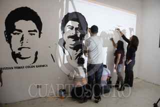 MÉXICO, D.F., 05SEPTIEMBRE2015.- Periodistas y artistas plásticos realizan el proyecto "Bardas para no olvidar" que tiene como finalidad realizar murales en espacios públicos de todo el país con la imagen de los periodistas, fotoperiodistas, activistas, defensores de derechos humanos, niños y mujeres asesinadas en México. Esta vez finalizaron un mural en las instalaciones de la Escuela Nacional de Trabajo Social en Ciudad Universitaria. FOTO: CARMEN ORTEGA /CUARTOSCURO.COM