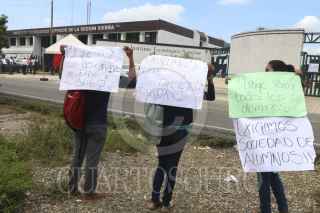 TEAPA, TABASCO, 07SEPTIEMBRE2015.- Profesores, administrativos y estudiantes del Instituto Tecnológico Superior de la región Sierra se manifestaron pacíficamente y cerraron el plantel educativo en demanda de mejoras salariales, prestaciones y respeto al contrato colectivo laboral y acusaron que el director del plantel se niega a cumplir con lo previsto en dicho documento. En el centro profesional, que se ubica en el kilómetro 4 de la carretera estatal Teapa-Tacotalpa, alumnos aprovecharon la manifestación para exigir mejores aulas, centro de investigaciones, que el transporte escolar funcione, y que se le de mantenimiento a los baños, ya que actualmente emiten olores fétidos. FOTO: MARCO POLO GUZMÁN HERNÁNDEZ /CUARTOSCURO.COM