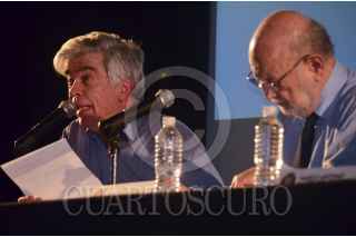 MÉXICO, D.F., 08SEPTIEMBRE2015.- El físico y químico Carlos F. Bunge y José Sarukhán durante la charla "La ética en la ciencia", como parte de la agenda de conferencias en el segundo día del "Coloquio La Izquierda Mexicana del Siglo XX", que se lleva a cabo en el Centro Cultural Bella Época y el Colegio de San Ildefonso. El coloquio está convocado por la Dirección General de Publicaciones y Fomento Editorial de la UNAM, el Fondo de Cultura Económica (FCE), Conaculta y la Secretaría de Cultura de Guerrero. FOTO: MARÍA JOSÉ MARTÍNEZ /CUARTOSCURO.COM