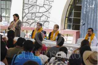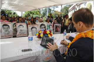 TIXTLA, GUERRERO 08 SEPTIEMBRE 2015.- Integrantes del Grupo Interdisciplinario de Expertos Independientes (GIEI) de la Comisión Interamericana de Derechos Humanos (CIDH) rindieron el informe de la investigación y las primeras conclusiones de la desaparición y homicidio de estudiantes de Ayotzinapa en el 2014 en Iguala. Los expertos de izquierda a derecha Claudia Paz, Francisco Cox, Carlos Beristaín y Omar Gómez, secretario ejecutivo del grupo de expertos. FOTO: JOSÉ I. HERNÁNDEZ / CUARTOSCURO.COM