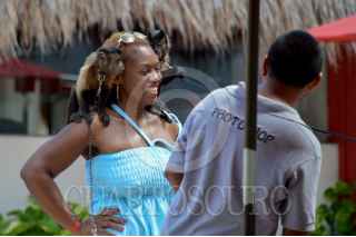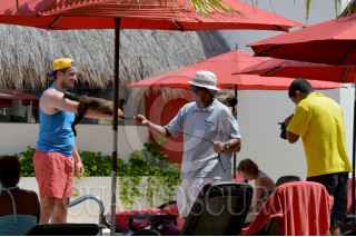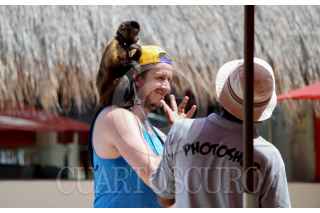 CANCÚN, QUINTANA ROO, 09SEPTIEMBRE2015.- Turistas se toman una foto con un par de monitos en un hotel de Cancún. FOTO: ELIZABETH RUIZ /CUARTOSCURO.COM