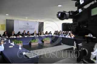 MÉXICO D.F. 09SEPTIEMBRE2015.- Carlos Martín Beristain y Francisco Cox Vial, integrantes del grupo Interdisciplinario de expertos independientes, se reunieron con senadores de la república para presentar el informe de las primeras conclusiones de las desapariciones y homicidios de los normalistas de Ayotzinapa elaborado por expertos del GIEI de la Comisión Interamericana de Derechos Humanos. En la imagen diversos medios de comunicación nacionales e internacionales cubrieron el reporte del informe. FOTO SAÚL LOPEZ /CUARTOSCURO.COM
