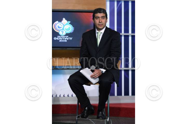 MEXICO, D.F., 26MAYO2006.- El comentarista Javier Alarcon, en un enlance desde Francia, junto con el equipo de Televisa Deportes, presentaron un avance de lo que presentarán en sus transmisiones para el Mundial de Futbol Alemania 2006. FOTO: Moisés Pablo/CUARTOSCURO.COM
