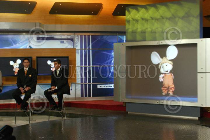 MEXICO, D.F., 26MAYO2006.- El ratoncito Topo Gigio se integró a el equipo de Televisa Deportes, que darán cobertura del Mundial de Futbol Alemania 2006. Gigio tuvo una presentación durante la conferencia de prensa en la que dieron los detalles de las transmisiones. FOTO: Moisés Pablo/CUARTOSCURO.COM