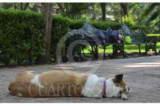 MÉXICO, D.F., 10SEPTIEMBRE2015.- Al unísono, un perro y un hombre dormitan en el Jardín de Santiago Tlatelolco, en la Unidad Habitacional Nonoalco-Tlatelolco. FOTO: MARÍA JOSÉ MARTÍNEZ /CUARTOSCURO.COM