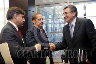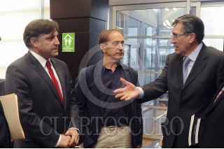 MÉXICO, D.F., 10SEPTIEMBRE2015.- Luis Raúl González Pérez, presidente de la CNDH, recibió hoy en sus oficinas a Carlos Beristain y Francisco Cox, integrantes del Grupo Interdisciplinario de Expertos Independientes (GIEI) de la Comisión Interamericana de Derechos Humanos (CIDH), quienes le hicieron entrega formal del “Informe Ayotzinapa”. En la reunión, González Pérez destacó que dicho documento está ya integrado al expediente de investigación que la Comisión Nacional de los Derechos Humanos (CNDH) tiene abierto sobre el caso y será debidamente analizado. FOTO: CUARTOSCURO.COM