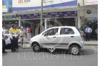 MÉXICO, D.F., 10SEPTIEMBRE2015.- Un conductor que trato de huir para evitar que le colocaran la araña, quedó sobre ella inmovilizado en la calle de artículo 123, en donde un policía resulto lesionado. FOTO: ARMANDO MONROY /CUARTOSCURO.COM