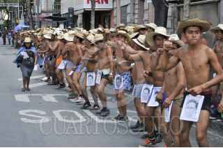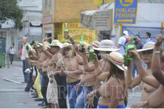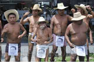 MÉXICO, D.F., 11SEPTIEMBRE2015.- Integrantes los 400 pueblos se manifestaron bailando semi-desnudos en las inmediaciones de la Secretaria de Gobernación donde exigieron un juicio político contra el diputado Miguel Ángel Yunes Linares y exigieron una audiencia con la titular de la PGR. FOTO: SAÚL LÓPEZ /CUARTOSCURO.COM