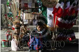 OAXACA, OAXACA, 11SEPTIEMBRE2015.- Un niño prepara sus útiles escolares en el puesto de banderitas que sus papás tienen en la calle de Hidalgo, en el centro de la ciudad de Oaxaca. FOTO: ARTURO PÉREZ ALFONSO /CUARTOSCURO.COM