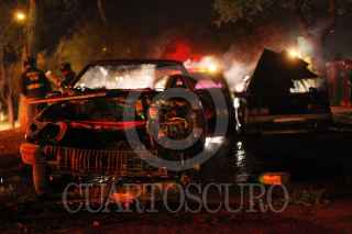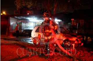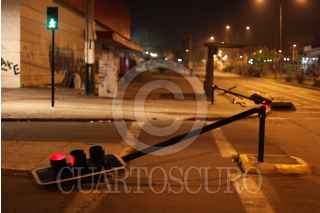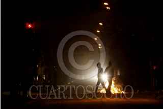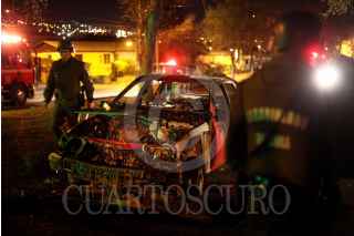 SANTIAGO, CHILE., 12SEPTIEMBRE2015.- Esta madrugada se registraron vehículos incendiados, cortes de energía eléctrica, disparos y barricadas levantadas en varios puntos de Santiago y otras ciudades de Chile, durante la jornada de conmemoración del 42 aniversario del golpe militar que derrocó a Salvador Allende. Los incidentes más graves se registraron en los municipios de Peñalolén, La Reina, San Bernardo, Cerro Navia, Estación Central y Huechuraba, situados en la Región Metropolitana, donde se concentra un tercio de la población de país. Carabineros de Chile informó que uno de sus elemento resultó herido en los enfrentamientos. FOTO: FÉLIX MÁRQUEZ /CUARTOSCURO.COM