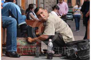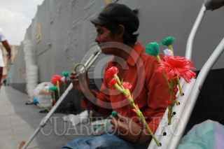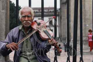 MÉXICO, D.F., 12SEPTIEMBRE2015.- Un hombre toca el violín, esperando recibir un poco de dinero para poder sostenerse económicamente. En la imagen sobre el Zócalo. FOTO: DANIEL HUERTA /CUARTOSCURO.COM