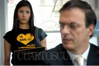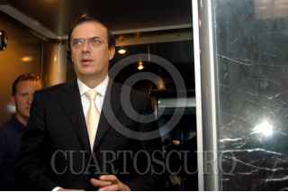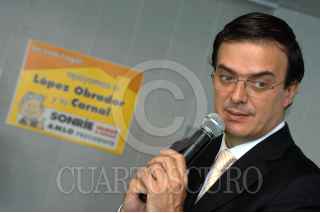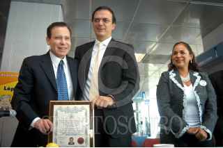 MÉXICO D.F. 27MAYO2006.- Marcelo Ebrad, candidato a jefe de gobierno del D.F. de la coalición por el Bien de Todos, recibió un reconocimiento por su trayectoria politica del Centro Internacional Biografíco, en la Torre Latino Americana. FOTO: Guillermo Perea/ CUARTOSCURO.COM