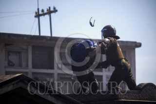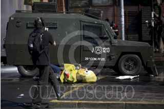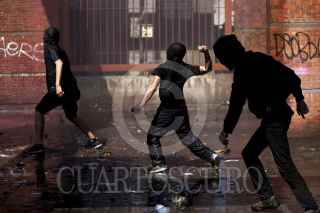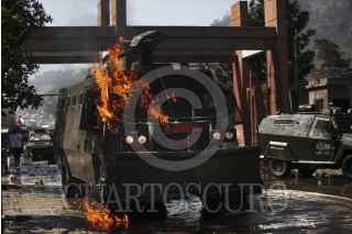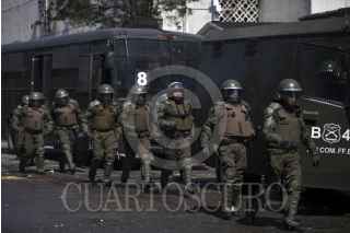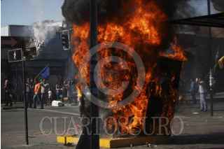 SANTIAGO, CHILE., 13SEPTIEMBRE2015.- Una nueva marcha por los derechos humanos se efectuó en la capital chilena, en donde miles de personas protestaron a 42 años del golpe militar. La manifestación culminó en el Cementerio General, en donde prevalecieron los incidentes entre manifestantes y carabineros. Al momento se tiene conocimiento de varios detenidos, heridos y un banco incendiado. FOTO: FÉLIX MÁRQUEZ /CUARTOSCURO.COM