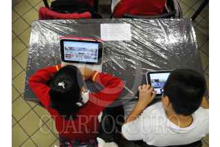 MÉXICO, D.F., 14SEPTIEMBRE2015.- Alumnos de la Escuela Primaria España, realizaron sus primeras prácticas con sus tabletas digitales que les otorgó la Secretaría de Educación Pública. FOTO: SAÚL LÓPEZ /CUARTOSCURO.COM