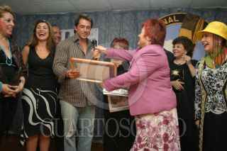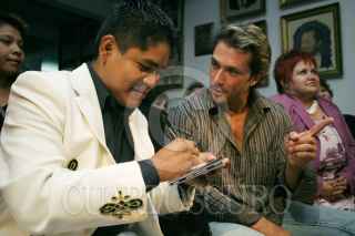 MÉXICO D.F. 31MAYO2006.- Erasmo Catarino, ganador de la Academia Cuarta Generación, autografeó su más reciente producción discográfica a el actor Sergio Mayer, durante el homenaje a ambos artistas por la Asociación Nacional de Locutores de México. FOTO: Diego Gallegos/CUARTOSCURO.COM