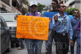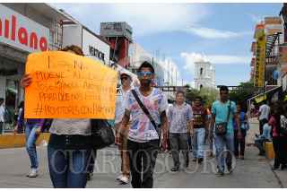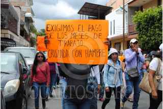 CHILPANCINGO, GUERRERO, 14SEPTIEMBRE2015.- Promotores del programa nacional Cruzada Contra el Hambre, que tienen tomada la delegación de la Secretaría de Desarrollo Social en la entidad, marcharon hacia la Comisión de Derechos Humanos para exigir el pago de cinco meses de trabajo e interponer una queja por violentar su derechos laborales y la intervención del presidente Ramón Navarrete Magdaleno. FOTO: JOSÉ I. HERNÁNDEZ / CUARTOSCURO.COM
