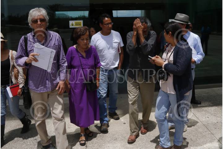 OAXACA, OAXACA, 14SEPTIEMBRE2015.- El pintor oaxaqueño Francisco Toledo fundador de Pro Oax Y miembros de esa organización y el artista plástico Sergio Hernández, sostuvieron una reunión con la presidenta de la comisión permanente de Turismo de la LXII legislatura, Martha Alicia Escamilla, el oficial mayor Juan Enrique Lira y la diputada Lilia Mendoza a quienes presentaron documentación en la que aseguran se demuestran las irregularidades para la construcción del Centro Cultural y de Convenciones de Oaxaca (CCCO), los diputados se comprometieron a exigir al gobernador Gabino Cué se entregue el proyecto ejecutivo, el cual hasta el día de hoy no se ha entregado y el cual aseguran no existe. FOTO: ARTURO PÉREZ ALFONSO /CUARTOSCURO.COM