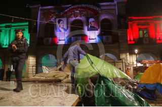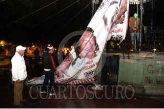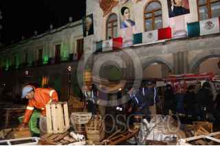 OAXACA, OAXACA, 15SEPTIEMBRE2015.- La madrugada de este 15 de septiembre policías e inspectores municipales, con el apoyo de elementos de Protección Civil del ayuntamiento capitalino retiraron el plantón que maestros de la sección 22 de la CNTE junto con diversas organizaciones sociales mantenían en el zócalo de la ciudad de Oaxaca desde el mes de julio del 2014. El operativo no registro ningún incidente. FOTO: ARTURO PÉREZ ALFONSO /CUARTOSCURO.COM