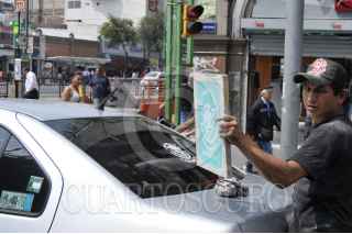 MÉXICO, D.F., 15SEPTIEMBRE2015.- Un joven se gana la vida plasmando logotipos en serigrafía del escudo nacional en el crucero de la avenida Chapultepec y Eje Central. FOTO: SAÚL LÓPEZ /CUARTOSCURO.COM