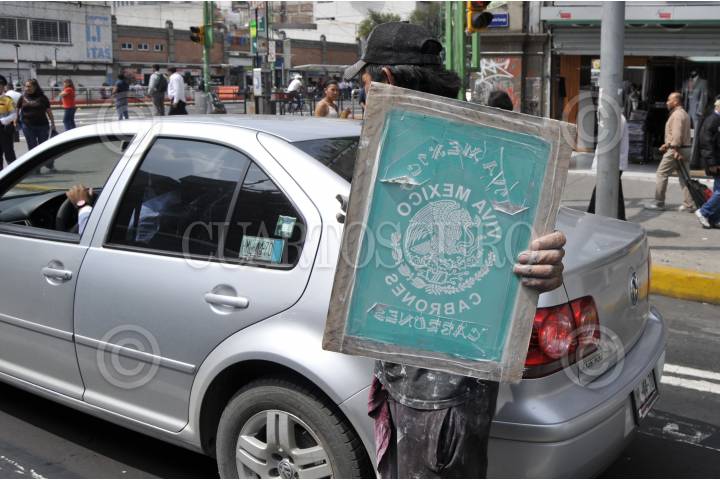 MÉXICO, D.F., 15SEPTIEMBRE2015.- Un joven se gana la vida plasmando logotipos en serigrafía del escudo nacional en el crucero de la avenida Chapultepec y Eje Central. FOTO: SAÚL LÓPEZ /CUARTOSCURO.COM