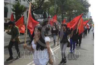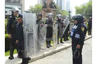 MÉXICO, D.F., 15SEPTIEMBRE2015.- Integrantes del Partido Comunista de México, (PCM) marcharon del Monumento a la Revolución al Hemiciclo a Juárez para exigir la liberación de su dirigente Enrique López Gutiérrez, durante la marcha fueron escoltados por elementos de la SSP-DF. FOTO: SAÚL LÓPEZ /CUARTOSCURO.COM