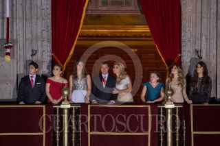 MÉXICO, D.F., 15SEPTIEMBRE2015.- Desde el Balcón Central del Palacio Nacional, y acompañado por su esposa, Angélica Rivera de Peña, y de sus hijos, el Presidente de la República, Enrique Peña Nieto, encabezó la ceremonia por el 205 Aniversario del Inicio de la Gesta de la Independencia de México. Al final, con su familia, presenció los tradicionales juegos pirotécnicos. FOTO: PRESIDENCIA /CUARTOSUCRO.COM
