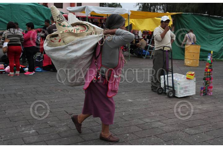 MÉXICO, D.F., 16SEPTIEMBRE2015.- Una mujer carga una bolsa repleta de sombreros mientras cruza la plancha delegacional de Xochimilco. FOTO: MARÍA JOSÉ MARTÍNEZ /CUARTOSCURO.COM