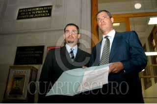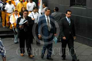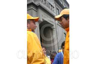 MÉXICO 01JUNIO2006.- Trabajadores de la empresa EUMEX, asistieron a la Suprema Corte de Justcia a solicitar la averigiacón de violación grave a las garantias individuales, por el juicio que le lleva el gobierno del D.F. por la instalación de los mupis que se encuentran en los paraderos de autobuses. FOTO: Guillermo Perea/CUARTOSCURO.COM