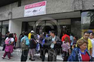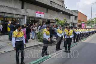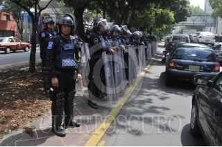 MÉXICO, D.F., 18SEPTIEMBRE2015.- Trabajadores del área de deportes de la delegación Tlalpan, protestaron frente a las instalaciones de la Oficialía Mayor para exigir el pago de su salario de tres meses. Policías antimotines resguardaron las oficinas para evitar que los inconformes bloquearan la vialidad. FOTO: SAÚL LÓPEZ /CUARTOSCURO.COM