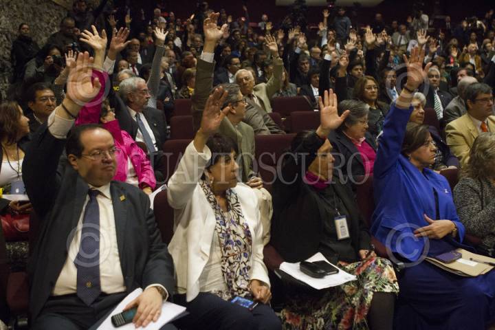 MÉXICO, D.F., 18SEPTIEMBRE 2015.- Votación de la sesión del Consejo Universitario de la UNAM, celebrado en el Antiguo Colegio de Medicina. Los consejeros designaron a Maité Ezcurdia Olavarrieta como nueva integrante de la Junta de Gobierno de la Máxima Casa de Estudios, en sustitución de Eduardo Antonio Chávez, quien por el límite de edad (70 años) dejó la designación. La nueva integrante completa los 15 notables que conforman la instancia encargada de la designación del nuevo rector para el cuatrienio 2015-2019. FOTO: MOISÉS PABLO /CUARTOSCURO.COM